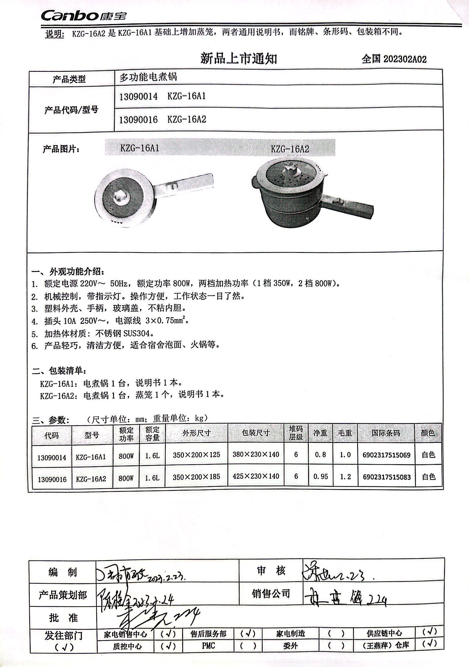 多功能电煮锅 KZG-16A1 条形码 2023-2-13 (6902317515069).pdf